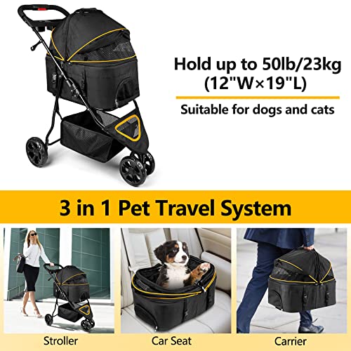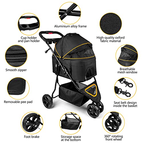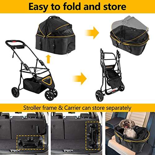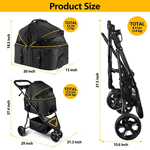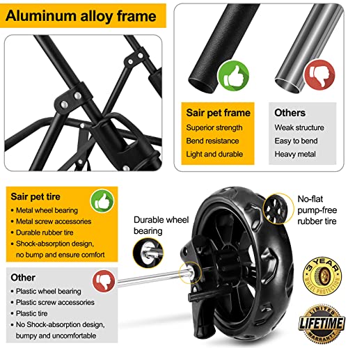 Transporteur 3 en 1 et amovible – Pliable, sa taille est de 79,5 cm (L) x 27,6 cm (l) – Pas besoin d’outils pour l’installation ! Fabriqué avec un tissu Oxford de haute qualité imperméable et un cadre en alliage d’aluminium durable. La roue avant pivotante à 360° possède du caoutchouc absorbant les chocs pour plus de sécurité. Sa ceinture intégrée offre le confort souhaité aux animaux. La poignée est conçue avec un espace supplémentaire pour la tasse et l’assiette des animaux et il y a même une place libre sur le fond pour stocker bouteilles d’eau, collations etc. Une assiette pliable est incluse – Parfait pour voyager ou camper ! Enfin cet accessoire pratique se nettoie facilement !