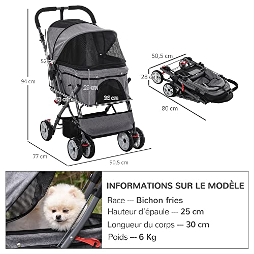 Vous recherchez une poussette pour votre chien ou chat ? Ne cherchez plus ! Voici la solution parfaite : cette poussette pliable d’une simple pression sur un bouton est robuste et pratique. Elle est composée d’un tissu 600D Oxford et comprend 3 fenêtres filets pour une meilleure ventilation et visibilité, ainsi qu’une fermeture zippée en bas de la fenêtre. Un capot réglable avec des pressions vient compléter le tout. À l’intérieur, vous trouverez 2 attaches de sécurité et une petite pochette et panier pratiques pour ranger les affaires de votre animal. Les roues avant pivotantes à 360° sont équipés de freins permettant un déplacement facile, mais toujours sûr grâce à sa poignée réversible qui peut être retournée selon l’envie. Une sangle d’attache complète ce modèle très complet !