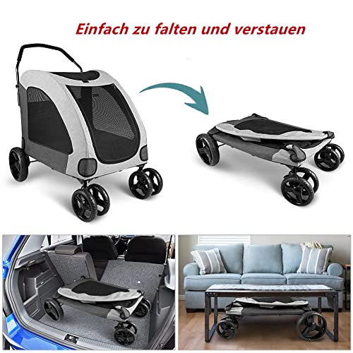 Grande capacité et dimensions robustes – Avec un tube en fer épais à texture dure et le tissu Oxford résistant, cet article est doté de quatre roues : 8 pouces (avant) et 12 pouces (arrière) avec des freins sûrs. Il est pliable pour être transporté et stocké facilement. Ses dimensions intérieures sont 113 x 92 x 79 cm (LxlxH). C’est l’outil idéal pour les animaux âgés ou ceux qui ont des problèmes d’articulation ! Offrez le meilleur cadeau que vous puissiez donner à votre animal de compagnie tout en facilitant son déplacement ! Pratique à garer, il permet de surmonter différents types d’obstacles routiers et sa structure globale stable assure une bonne résistance aux chocs. Un outil utile qui vous accompagnera partout lorsque vous amènerez votre chien en lieux publics !