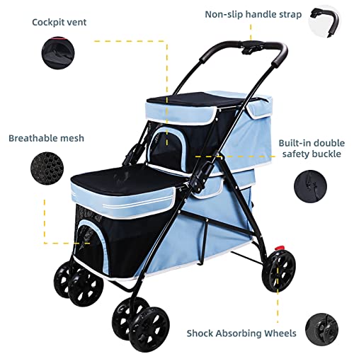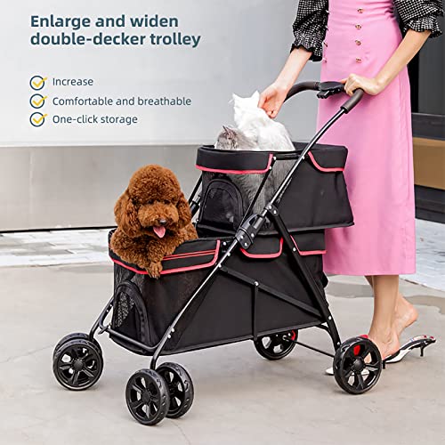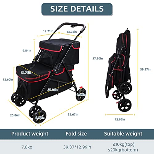 Facilitez vos déplacements ! Profitez d’une belle promenade tout en restant en sécurité. Offrez à votre animal de compagnie et à vous-même le plus grand confort. Bénéficiez d’une zone de conduite généreuse et réalisez des trajets doux et agréables. Des espaces de rangement supplémentaires sont inclus dans la poussette jogger, ainsi qu’un coussin intérieur pour le chariot. Des freins arrière et une attache sûre y sont également installés, avec une moustiquaire zippée sur chaque compartiment du buggy ! Le montage est simple grâce au manuel fourni !