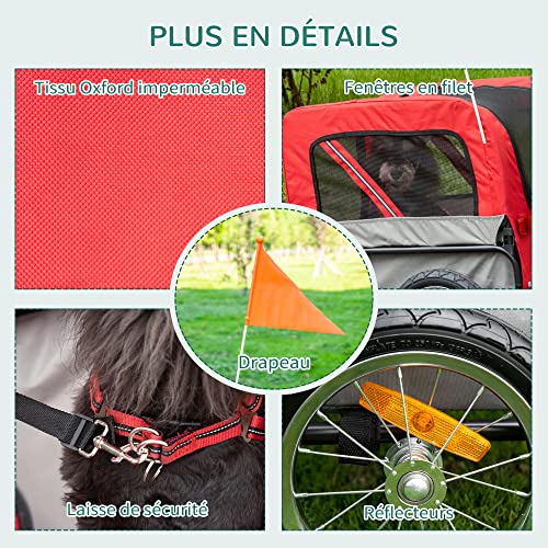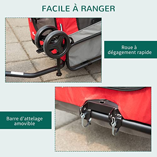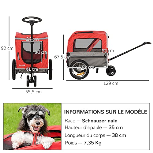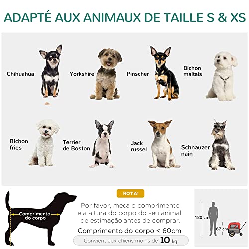 Transformez facilement votre vélo en poussette avec la Remorque Jogger 2 en 1 ! Offrez un maximum de confort à votre animal domestique grâce à sa capacité d’accueil jusqu’à 10 kg. Une laisse intérieure pour plus de sécurité, une structure solide et durable composée d’acier et de tissu Oxford 600D respirant, des dimensions totales impressionnantes (129L x 55,5l x 92/67,5H cm) ainsi que des dimensions intérieures (62L x 41l x 50H cm), cette remorque est parfaite pour les animaux dont le corps fait moins de 42 cm. Des réflecteurs sur le tissu et les roues + un drapeau rouge viennent complétés son tableau.